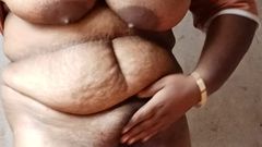 Lady with big ass and big nipples massaging performance