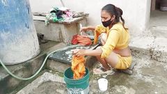 The Indian step-sister was washing clothes when she got wet pussy seeing step-brother's fat dick.